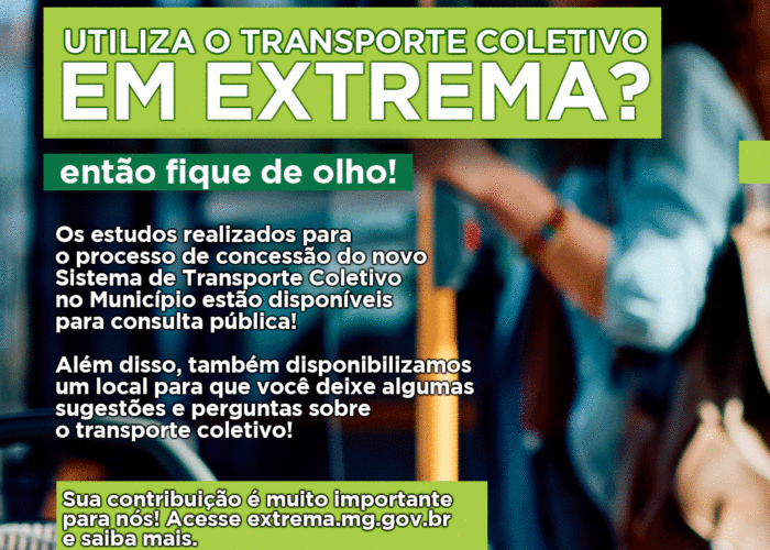 Lembrando que o edital definitivo, na modalidade de Concorrência Pública, tem previsão de publicação em 29 de março, sendo que a cópia dos estudos de viabilidade estará disponível em: extrema.mg.gov.br/imprensaoficial/transporte-publico.