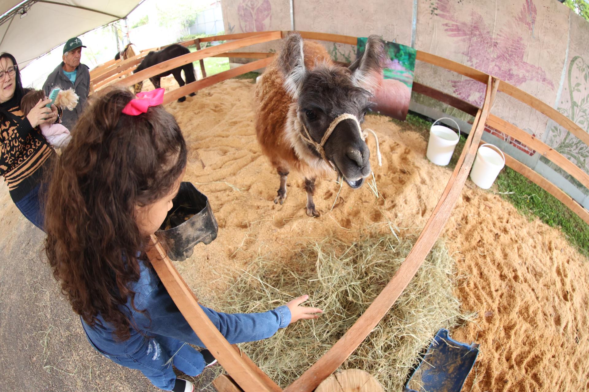 A organização, comandada pela ‘Fazendinha Tonéro’, recriou um ambiente semelhante do campo, onde estão sendo expostos diversos animais rurais, como bois de sela, pôneis, lhama, minicabra, carneiro, minivaca e outros.