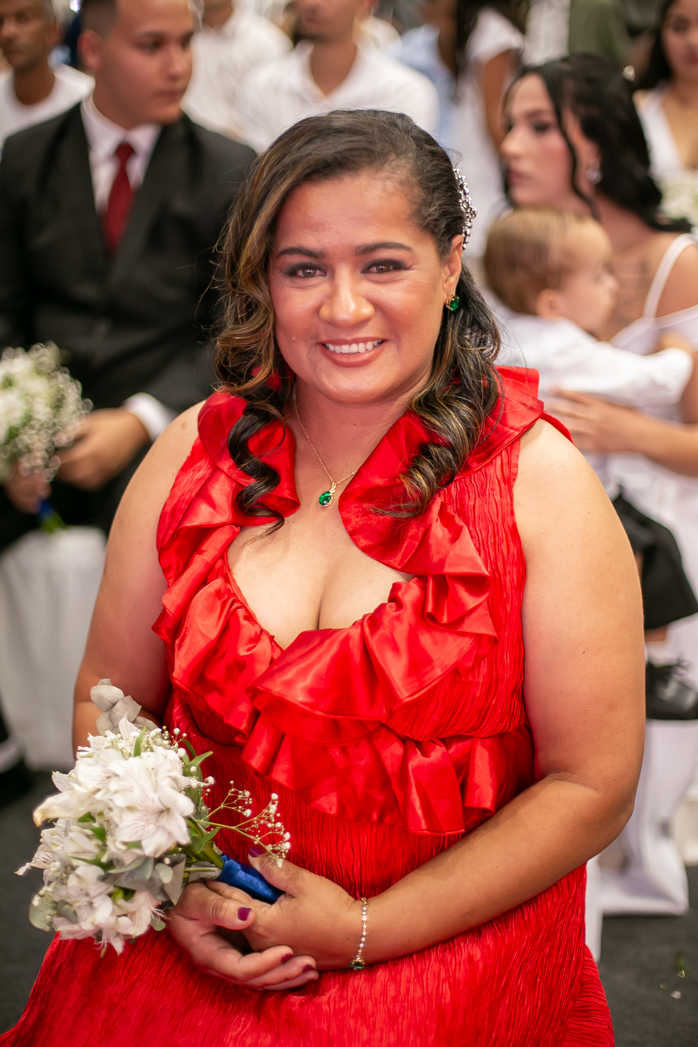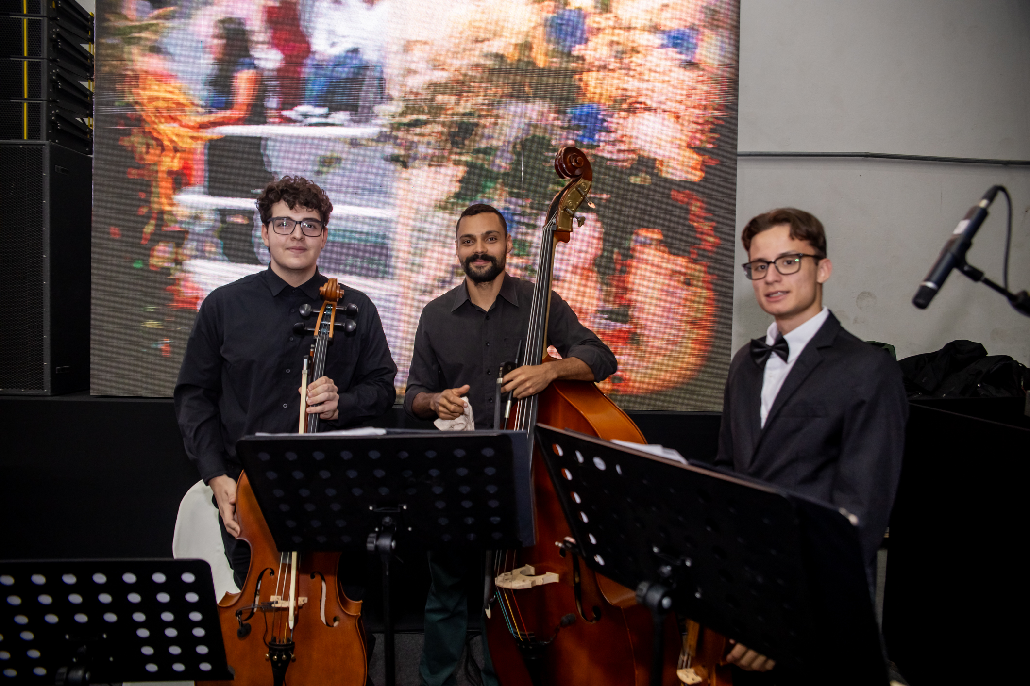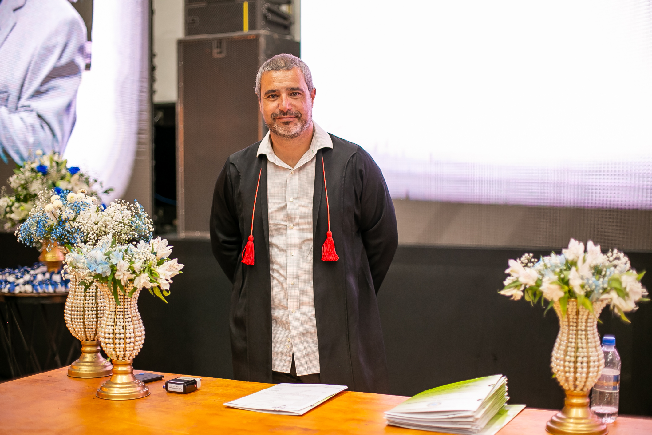O espaço foi cuidadosamente decorado com arranjos florais, tendo iluminação cênica, sonorização, uma banda que fez arranjos musicais, mesa decorada para doces e o tradicional tapete vermelho, tudo preparado para criar um ambiente acolhedor e emocionante para os casais, seus familiares e amigos convidados.