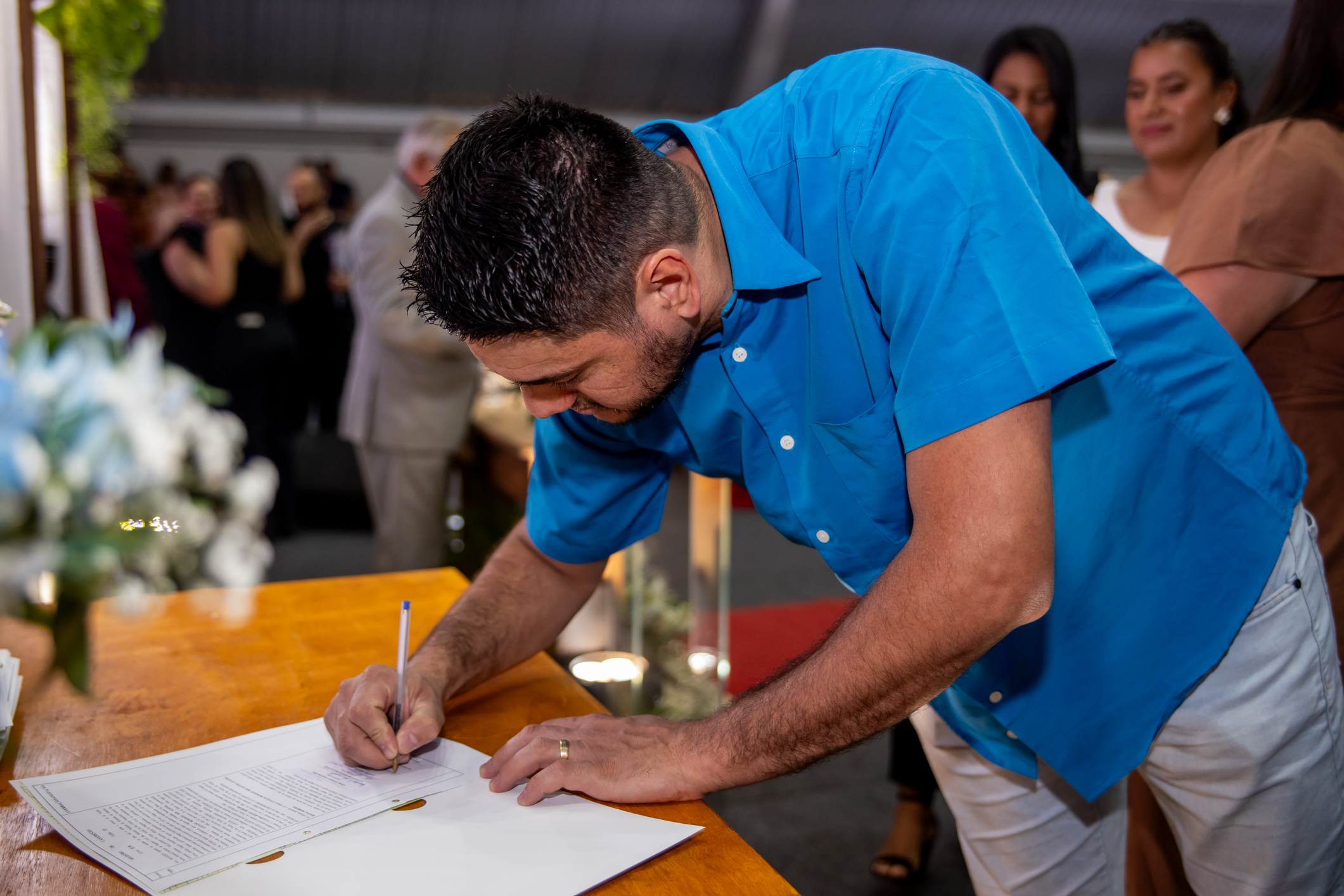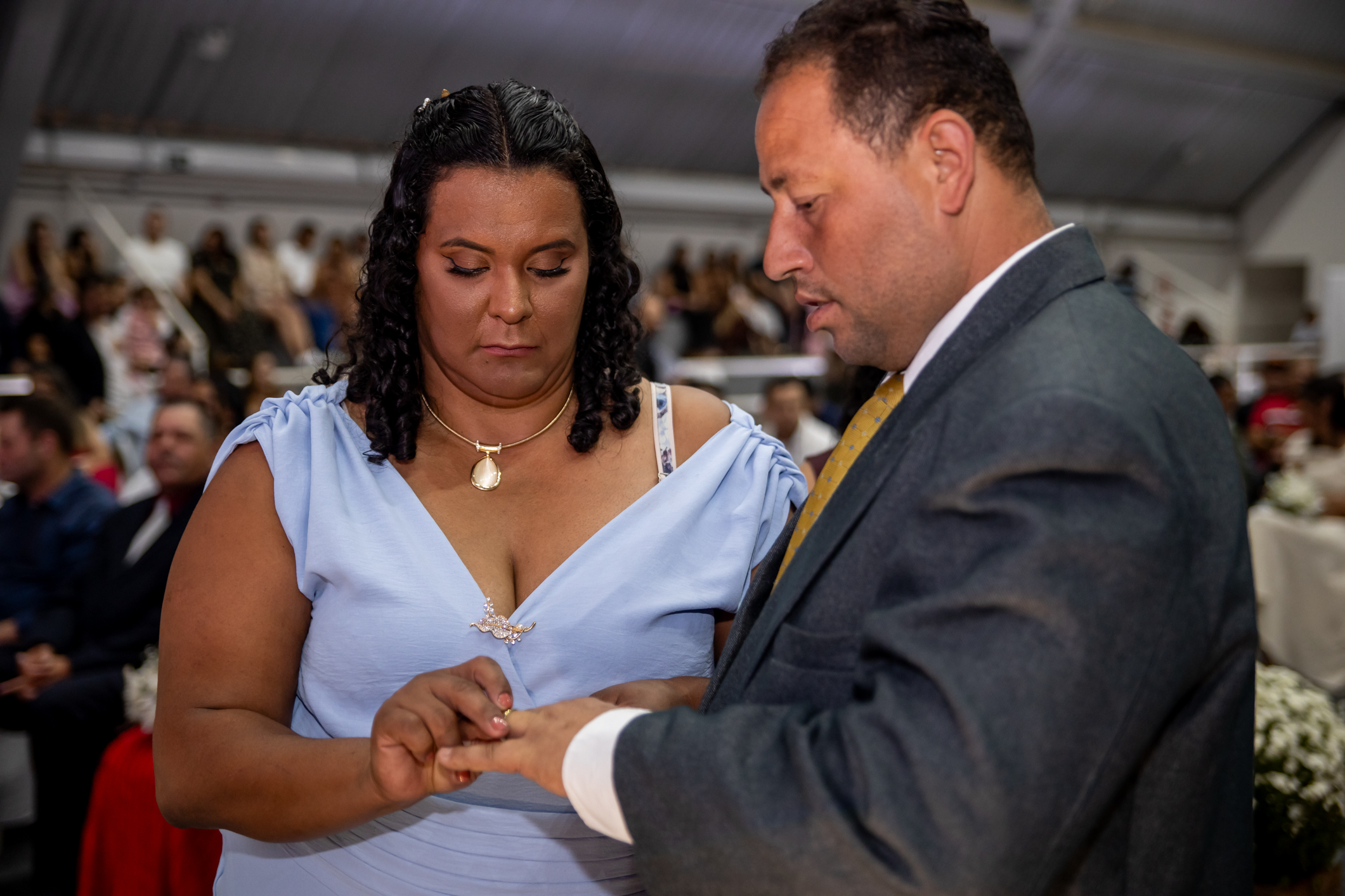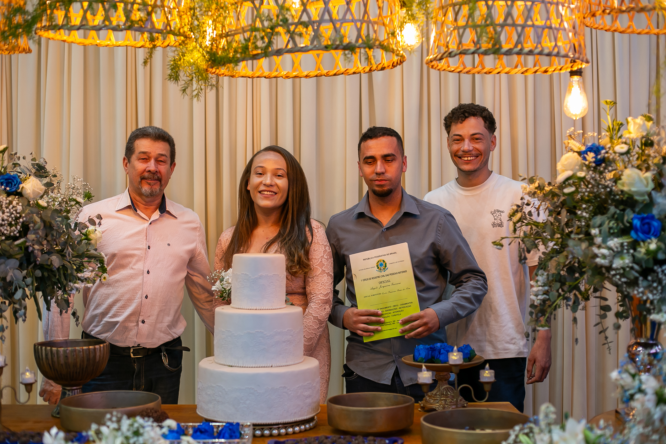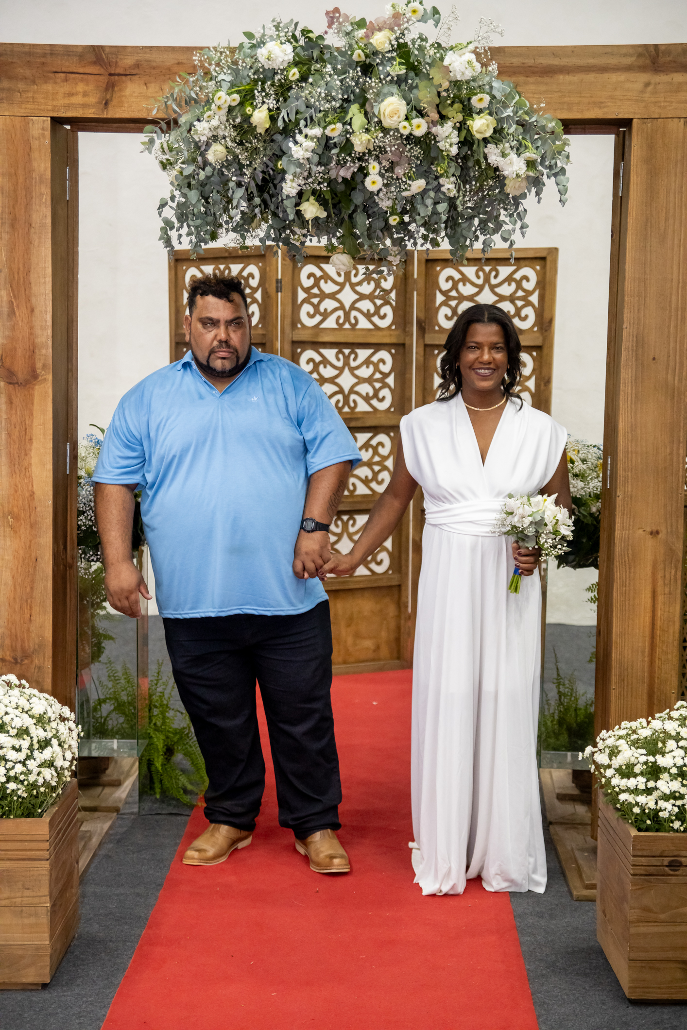 A união foi formalizada por um juiz de paz, sob o regime de comunhão parcial de bens, cuja iniciativa foi custeada integralmente pela Secretaria de Assistência Social, sendo direcionada aos casais que não têm condições de arcar com os custos jurídicos do processo cartorial.