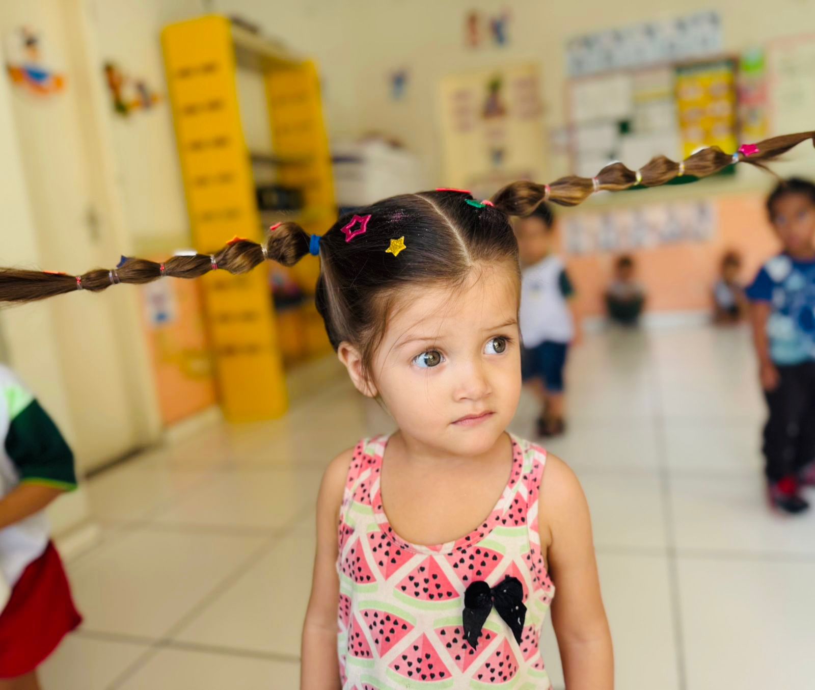 Todas as unidades escolares, incluindo os CEIMs, participaram dessa divertida ação, que encantou tanto as equipes escolares quanto as famílias, que ajudaram as crianças a criarem penteados criativos e cheios de personalidade, com inspirações que iam de personagens de desenhos animados a comidas, figuras lúdicas e muito mais. Entre os destaques estavam cabelos transformados em cartelas de ovos, castelo da Rapunzel, balde de pipoca, ninho de galinha e até um dinossauro.