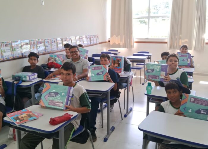 As apostilas, distribuídas ao longo deste mês, são compostas por quatro módulos, correspondentes a cada bimestre letivo, sendo entregues aos estudantes do Pré I e Pré II (Educação Infantil) e às turmas do Ensino Fundamental, até o 9º ano, garantindo mais recursos para nossas crianças e jovens.