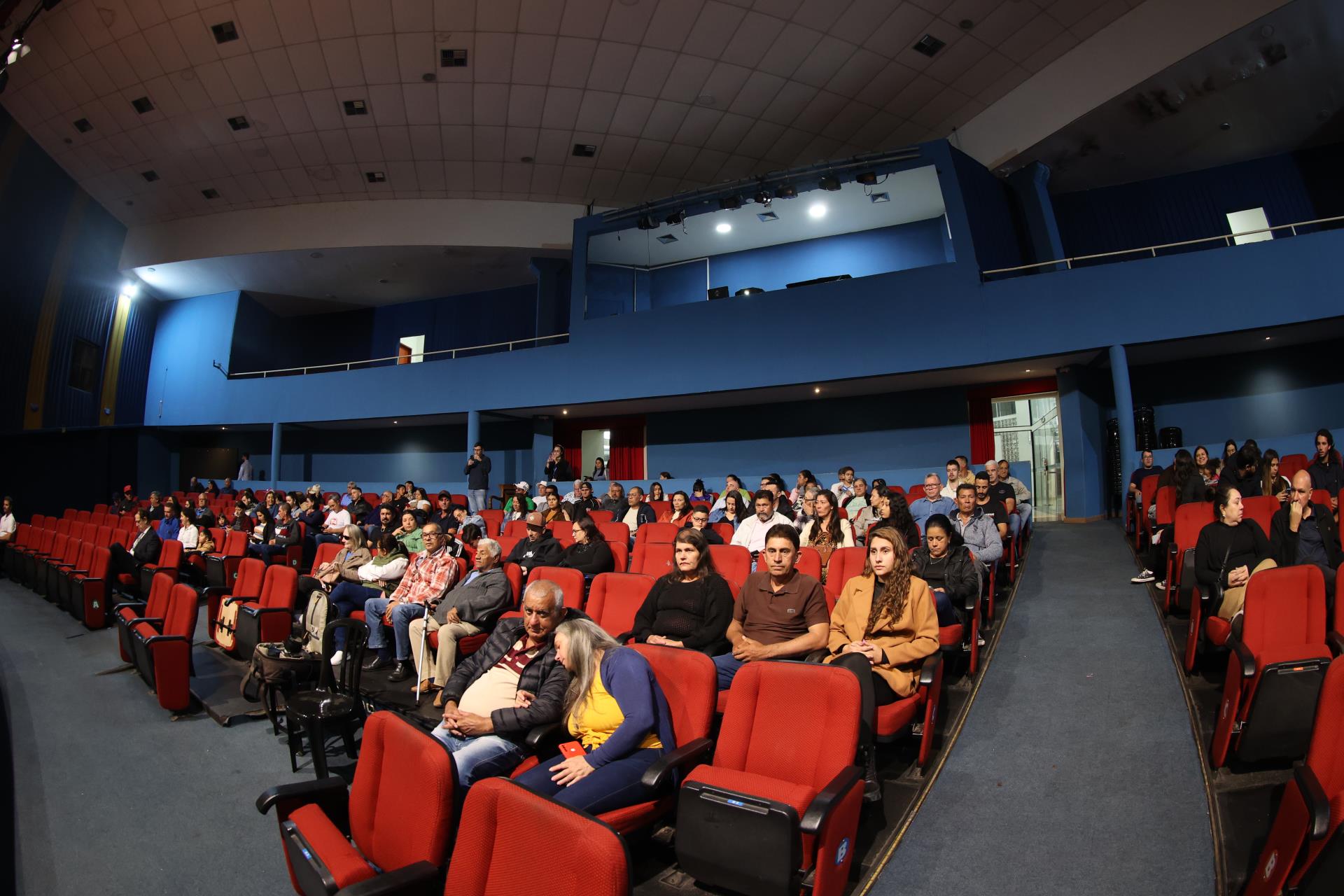 Prefeitura entrega títulos de legitimação fundiária a 100 famílias de três núcleos regularizados em cerimônia emocionante no Cine Teatro