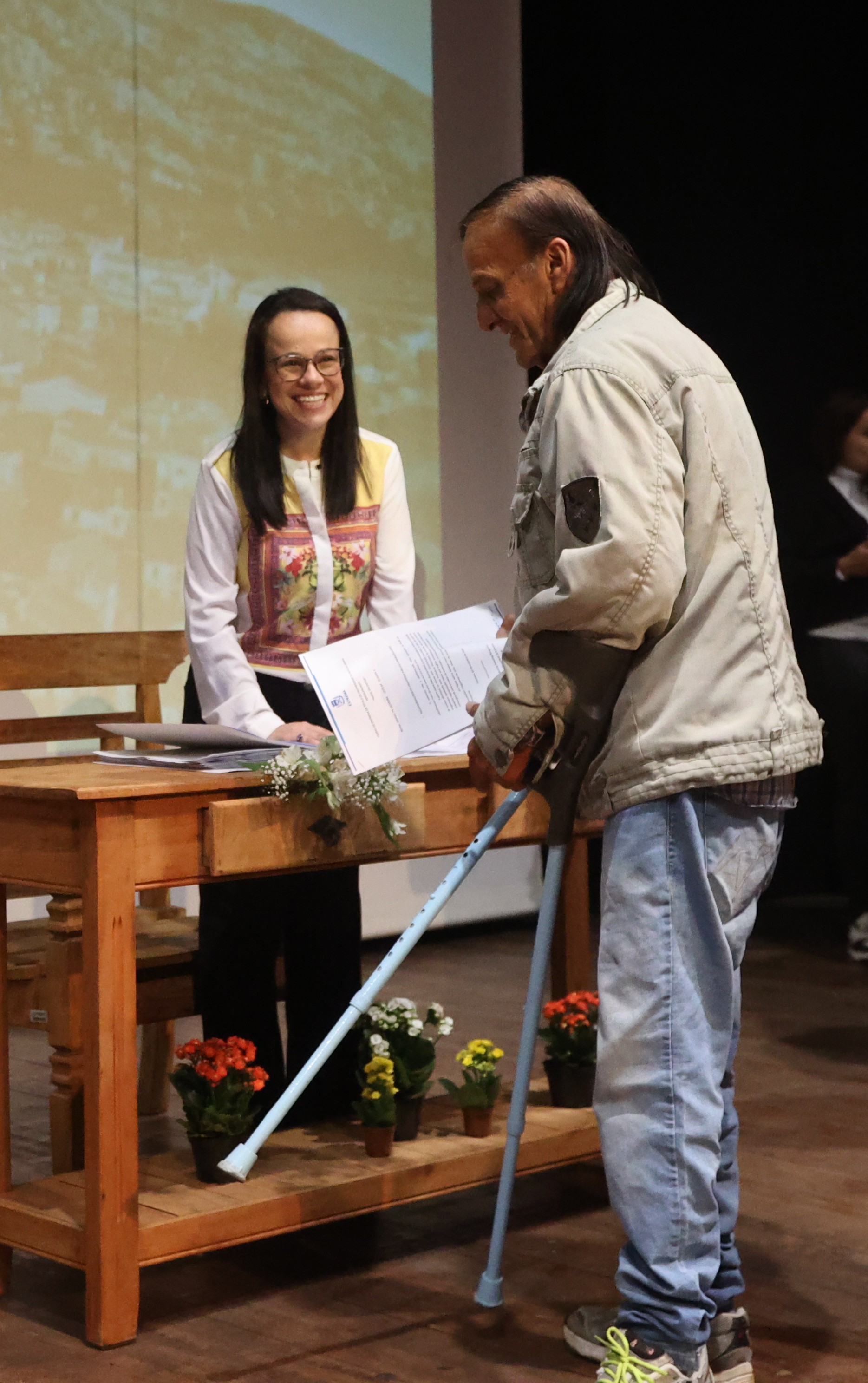 Em uma cerimônia marcada pela emoção, realizada no Cine Teatro, cerca de 70 ocupantes dos núcleos Vila do Postinho, no Bairro Ponte Alta, e Manil Valentine e Wandina – Morais, no Bairro dos Pires, estiveram presentes e receberam os registros das matrículas, concedidos por meio de legitimação fundiária. Outras 30 famílias que não puderam comparecer à cerimônia retiraram seus títulos posteriormente na Sala Reurb.