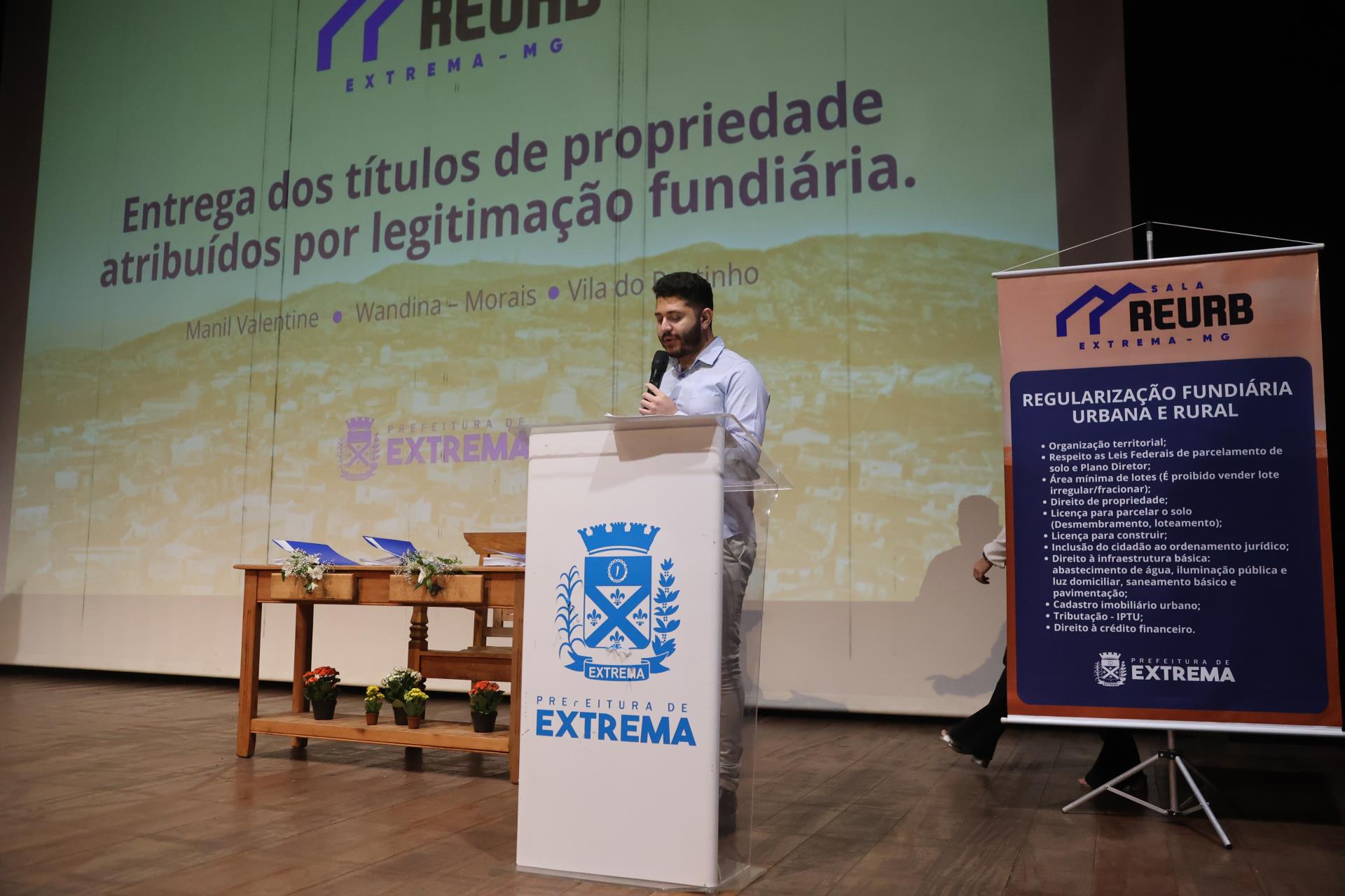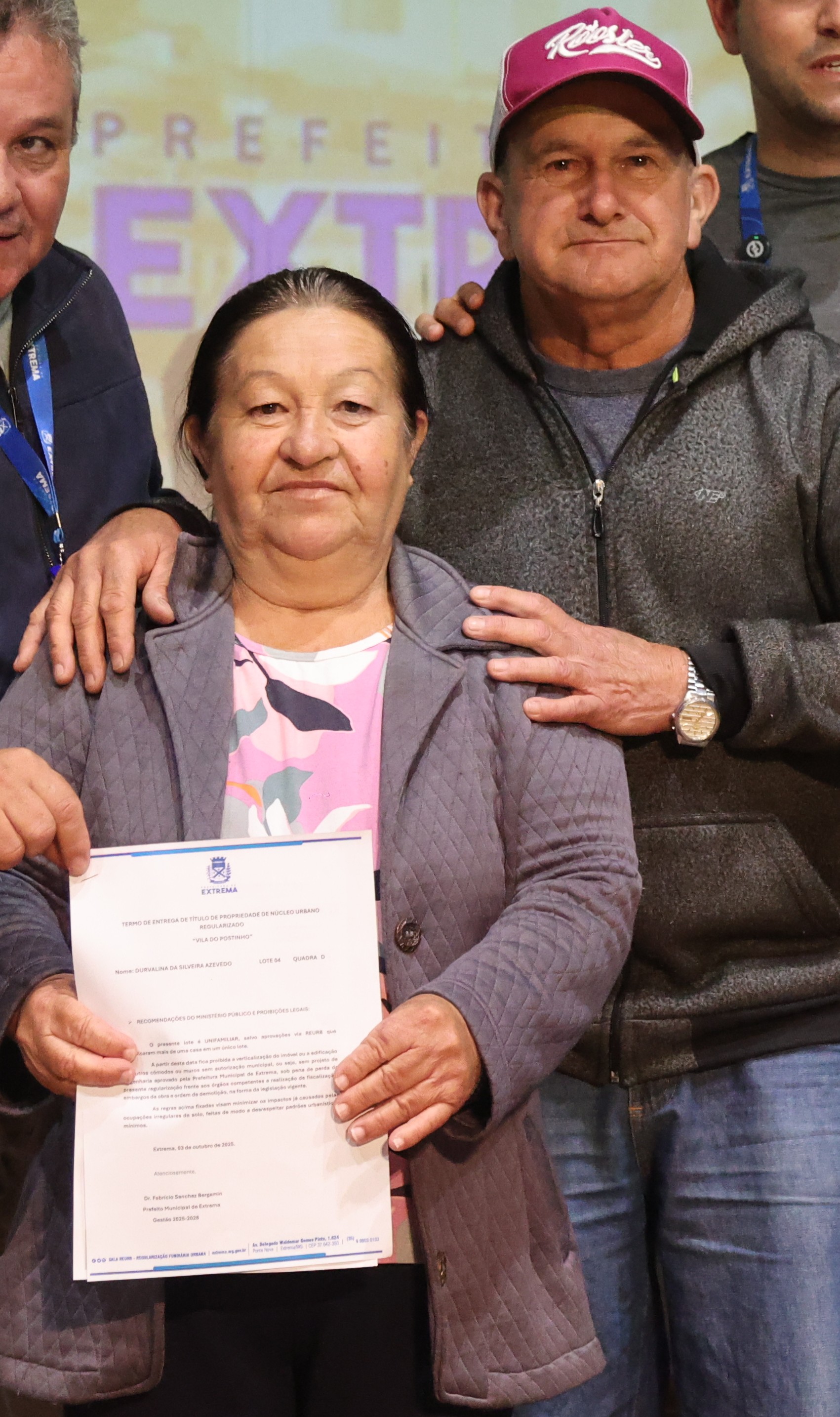 Esta entrega de títulos é um empenho conjunto de inúmeras secretarias que estiveram envolvidas neste importante trabalho, sob a liderança da Secretaria de Administração e Gestão, incluindo Meio Ambiente, Saúde, Educação, Obras e Urbanismo, Assistência Social, Arrecadação Fazendária Municipal, entre outros parceiros, garantindo a adequação e a legalidade dos projetos urbanísticos. Também contribuíram para o planejamento e a execução da Regularização Fundiária Urbana autoridades e servidores de grande relevância, como a Câmara Municipal de Extrema, o Ministério Público de Minas Gerais, a Polícia Militar, a Procuradoria Jurídica e o Serviço Registral de Imóveis.