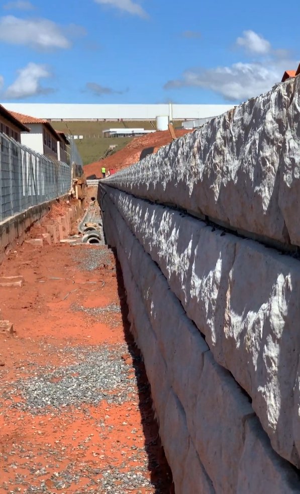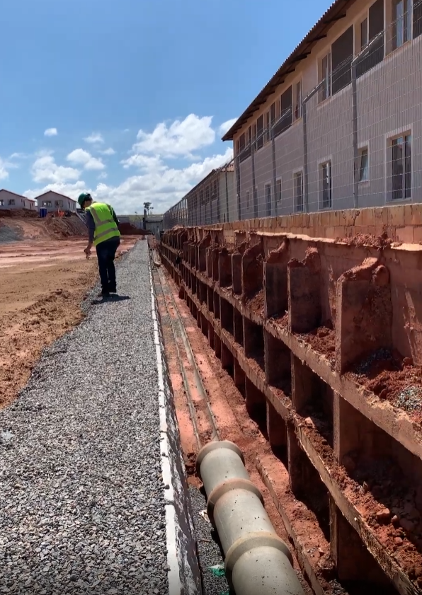 Atualmente, as frentes de trabalho estão concentradas nas obras de drenagem, instalação da rede de esgoto e abastecimento de água potável, além da continuidade do muro de contenção, que possui aproximadamente 14 metros de altura e 183 metros de extensão.